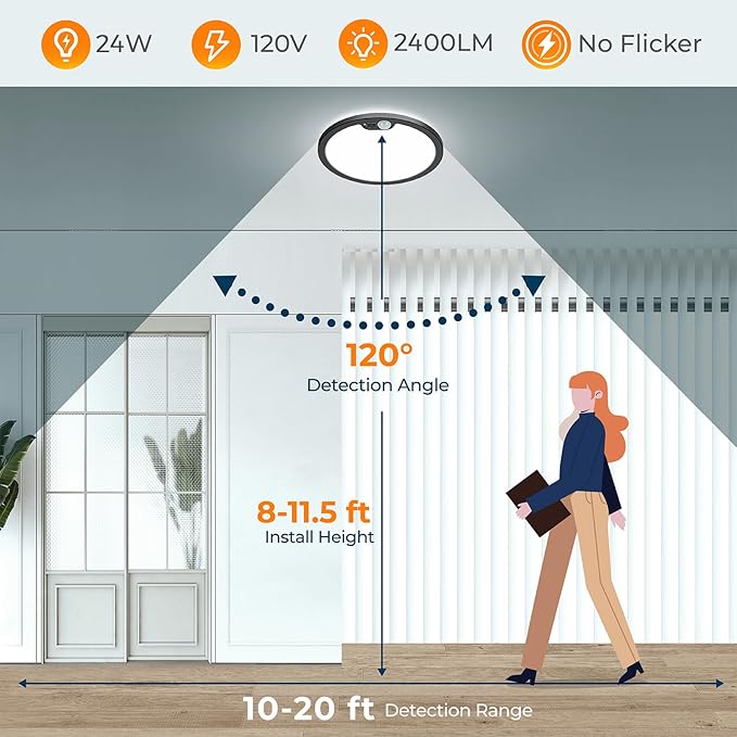 - PIR Motion Sensor Wired Light: Built-in PIR infrared motion detector, BLNAN hardwired ceiling light's detection angle is up to 120° and detection range of 10ft-semidiameter. The mounting height recommended: 11.5ft