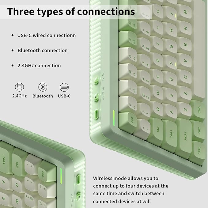- 【Multiple Connectivity】Halo75 V2 mechanical keyboard supports Bluetooth/2.4GHz/USB-C connectivity and is compatible with macOS/Windows/Linux/Android/iOS. Wireless mode allows you to connect up to four devices at the same time and switch between the four devices at will, allowing you to go from office to gaming with ease.