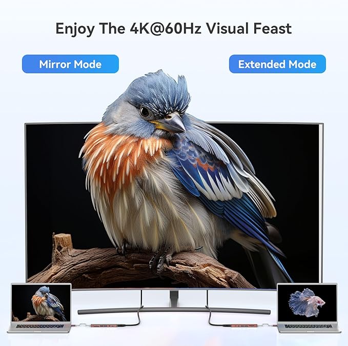 - Enjoy Crystal-Clear 4K@60Hz Video: MacBook Pro Adapter mirrors or extend your screen with USB C hub’s HDMI port and directly stream 4K UHD @60Hz video to HDTV, monitor or projector to see all in sharp and glorious detail, perfect for photographer and video editor