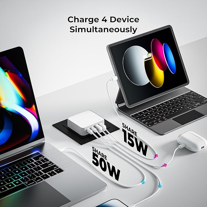- High-Speed Charging: Connect a single device to get a 65W max charge. And when you connect four devices, power will be distributed efficiently between ports to ensure you get the best charge