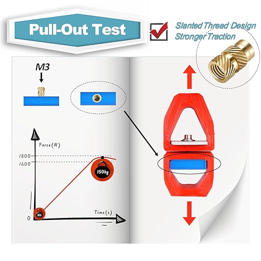 - Secure fixation: Our brass threaded inserts are made of high-quality brass and undergo precision processing, ensuring excellent heat conduction and corrosion resistance. Through testing, we have found that compared to straight-threaded inserts, the knurled threaded inserts provide stronger gripping strength and can withstand high levels of tensile force.