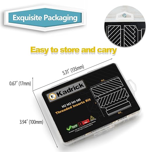 Kadrick 520Pcs M2 M3 M4 M5 Threaded Inserts Assortment Kit for 3D Printing Components, Metric Brass Knurled Nuts, Insert by Heat into Plastic Parts