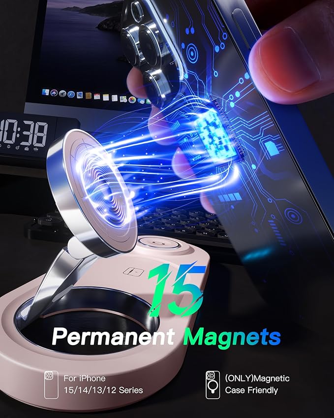 - Keep Cables Out of the Way: Our mag-safe 3-in-1 wireless charger eliminates tangled cables by charging your iPhone, Apple Watch, and AirPods simultaneously. Say goodbye to the cluttered and disorganized charging setup on your desk! Additionally, it's the ideal solution for frequent travelers or business trips, saving you time and effort by eliminating the need to carry multiple chargers