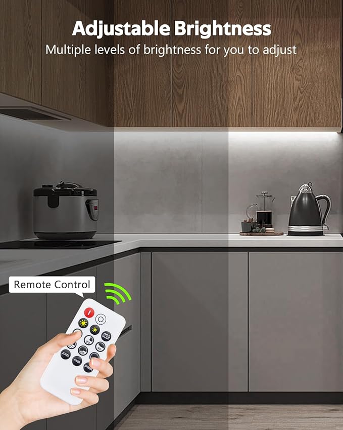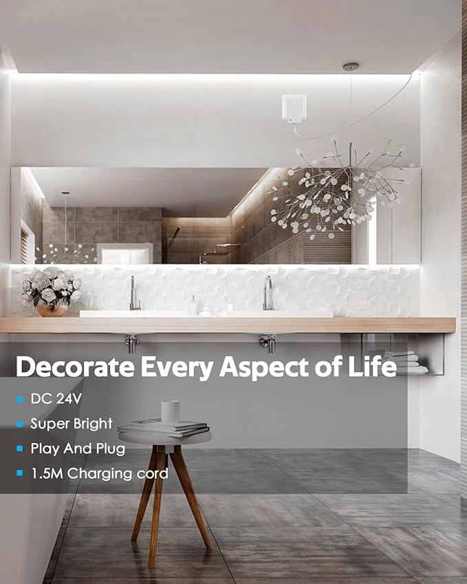 - 【Dimmable Controller & Safe Touch】The upgraded RF remote controller can control 360 degrees, you can adjust the brightness of the strip between 10%-100% according to your needs, there are also three light effects: jump, Fade and Strobe. The timer off function of the controller can make the strip light turn off automatically after 60 seconds. In addition, the 24V light strip has low heat generation, safe and touchable, which is the best choice to light up your home.