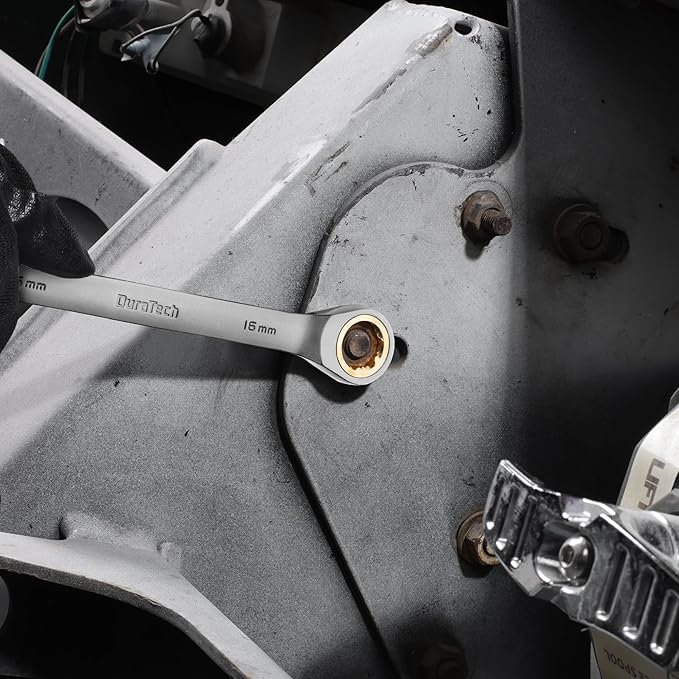 - Premium chrome vanadium steel wrenches with nickel plating provide excellent corrosion resistance, wear resistance, and durability. Their polished surface ensures easy cleaning and aesthetic appeal. DURATECH 10-piece anti-slip ratcheting wrench set is your best companion for efficient emergency repairs