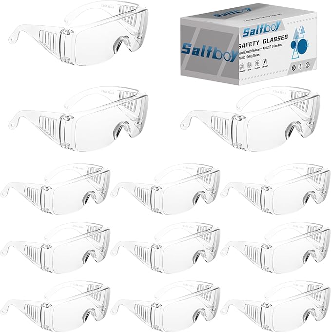 - Salfboy Safety Goggles : Safety goggles over glasses provide reliable protect your eyes against dust and debris, and are a good choice for working outside, do housework,etc, providing a clear and safe view of the road