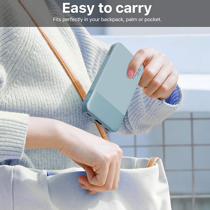 - 【Two-Way Fast Charging】Equipped with 2 USB-C input/output ports (up to 35W) and 1 USB-A output port (up to 30W), the portable power bank includes a C to C fast charging cable. It can fully recharge itself in just 1.33 hours and charge an phone 16 in only 2 hours. Restore power quickly anytime, anywhere, and stay on top of your busy schedule without missing a moment