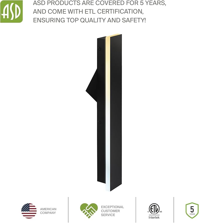 ASD LED 36" Long Wall Mount Light Fixture, Outdoor & Indoor Linear Sconce | 3CCT, Dimmable, Waterproof, Anti-Rust, ETL Listed | 30W 1900LM 3000-5000K 100-277V | Exterior Porch Lighting | Black