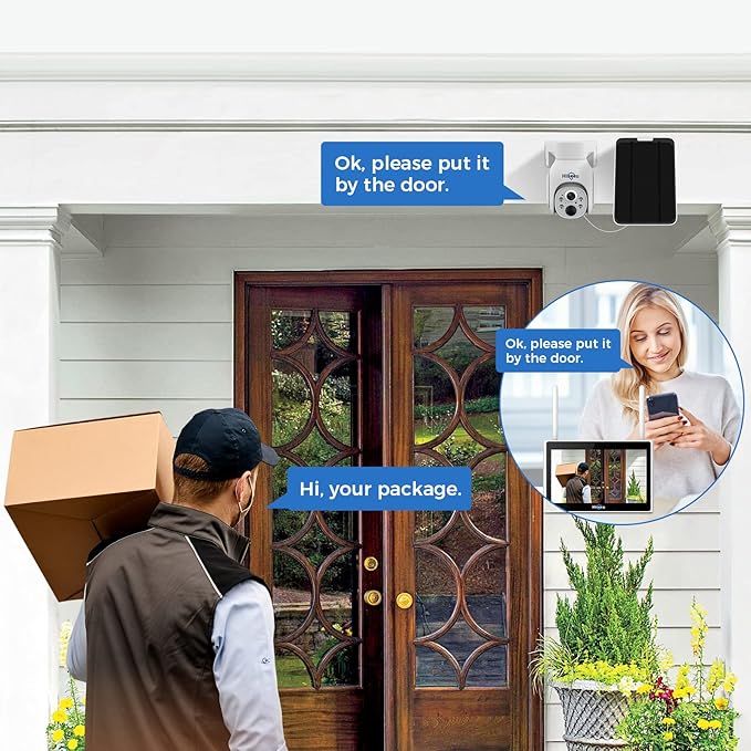 - PIR Detection & Two-Way Audio: Record when only detect motion, PIR sensing technology, don't worry about receiving false positives caused by flying insects etc. Scare off unwelcome people through light alarm and sound alarm when detect human motion in the dark, you can also talk with people within the monitoring range through two-way audio function.