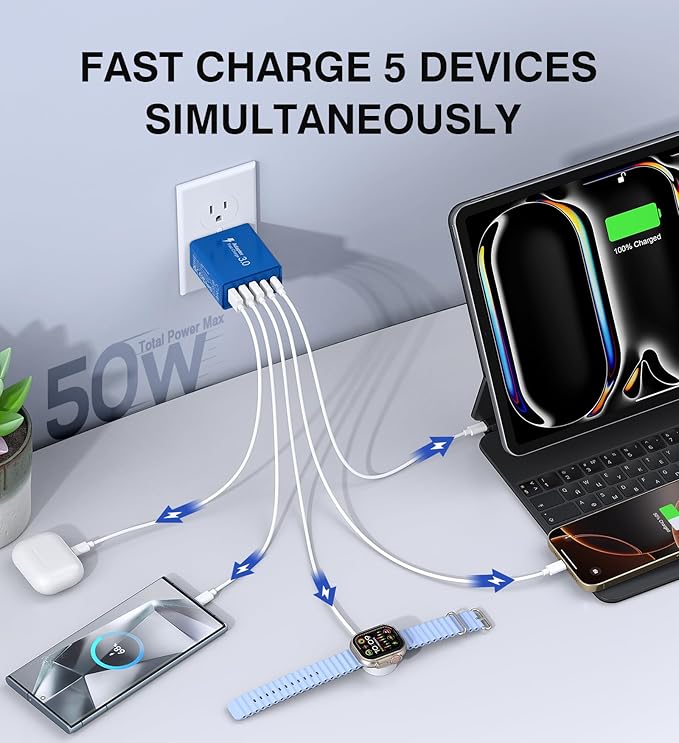 - Included Components : 2 x 5-Port 50W Fast Wall Chargers