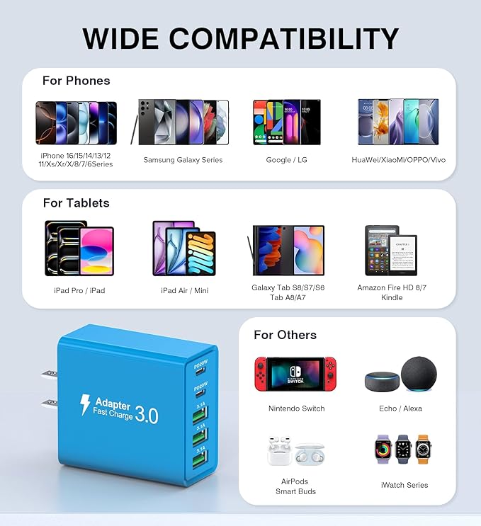 ![[2-Pack] USB C Wall Charger, 50W USB C Charger Block 5-Port PD Fast Charging Blocks,2USB C+3USB A Multiport Plug,Type C Power Adapter Brick Cube for iPhone 16/15/14/Pro,iPad,Samsung,for Switch(Blue)](http://hometinkers.com/cdn/shop/files/71yyTVzmBPL._AC_SX679.jpg?v=1757165814&width=1445)