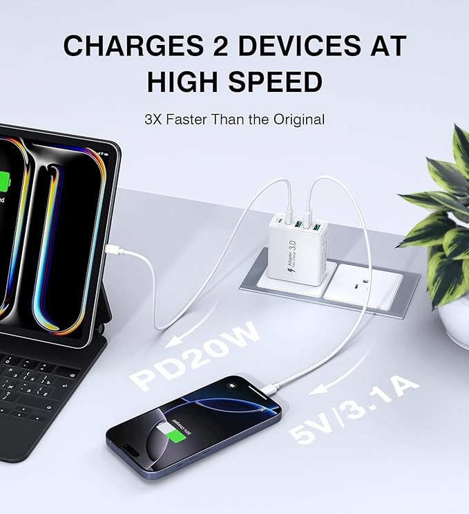 - USB Block Wide Compatibility:This type c wall charger is compatible with iPhone 16/16 Pro/16 Pro Max/16 Plus,iPhone 15/15 Pro/15 Pro Max/14/13/12/11/SE3/XR/XS Max/X/8 Plus, iPad Air/Pro/Mini, AirPods Pro, Samsung Galaxy S23/S22/S21/ S20 Ultra/S10/S9/S8 Plus, Tablet, LG, Motorola, PC Tablet, Google Nexus Tablet, Samsung Galaxy Tab AirPods 4,Apple Watch 10,Ultra 2 and other digital devices