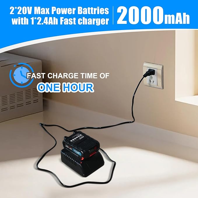 - 【Complete package】Along with the drill, you will receive 2*20v 2.0Ah batteries, 1*Cordless Hammer Drill, 1*charger, 1*manual, 1*tool bag and 1*flexible extension piece. Customer service is available when you have questions about our products.