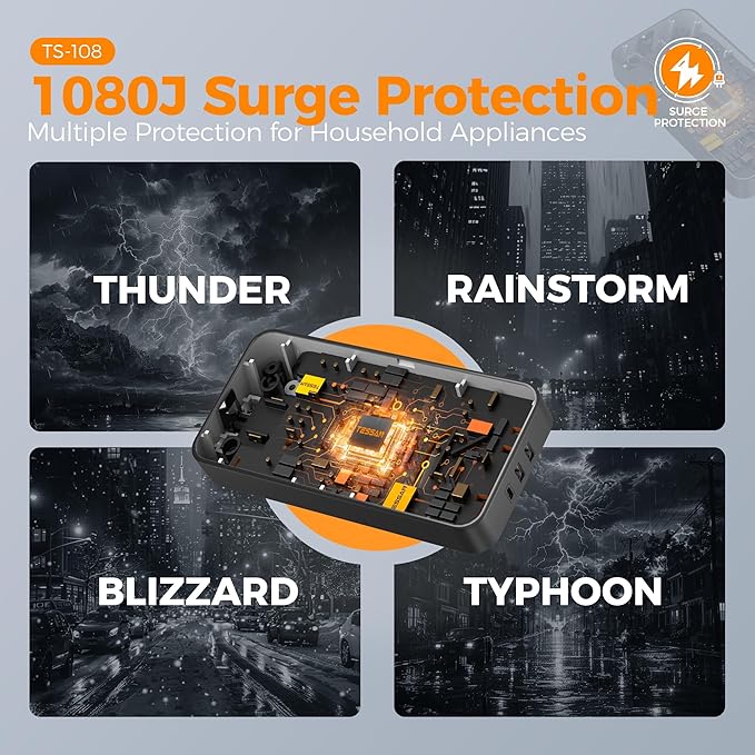 - 1080J Surge Protector Power Strip: Equipped with overload protection, short-circuit protection, over-current protection, and etc; Reliable on/ off switch can automatically shut off and protect your expensive electronics, providing you with a safe and reliable charging environment