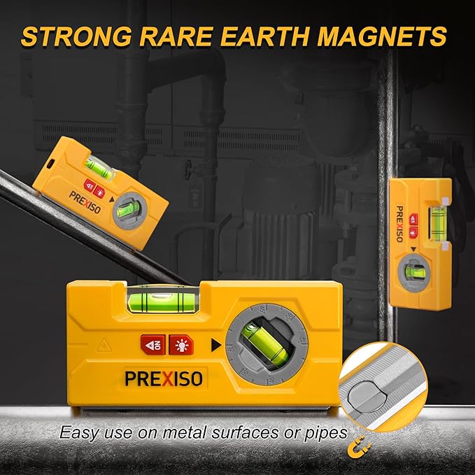 PREXISO 2-in-1 Line Laser Level - Mini Torpedo Level with Light, 3-3/4 inch Rotatable Magnetic Pocket Level & 30Ft Laser Line Leveler Tool for Hanging Picture, Wall Marking Painting, Home Renovation