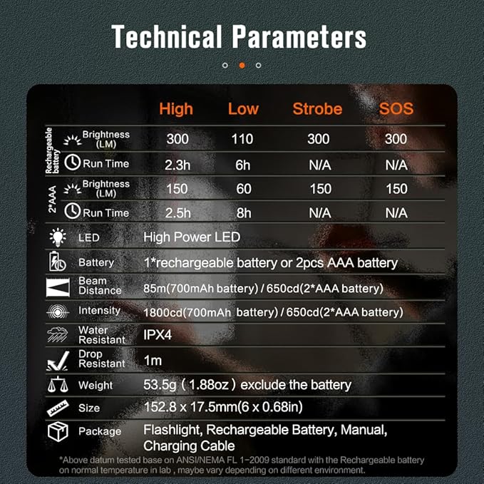 - *Dual Power Source: This flashlight is equipped with a dual power source system, allowing you to use either standard AAA batteries or a rechargeable battery. This versatility ensures that you always have a power source available, whether you're at home or on the go