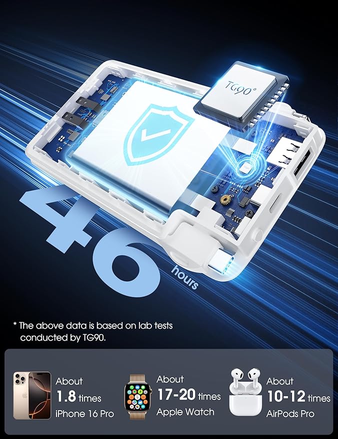 - Universal compatibility: The battery pack contains multi-type cables for all kinds of smartphones It is widely compatible with 16/15/14/13/16Pro/15Pro/14Pro/16Pro Max/15Pro Max, etc, and most Android phones
