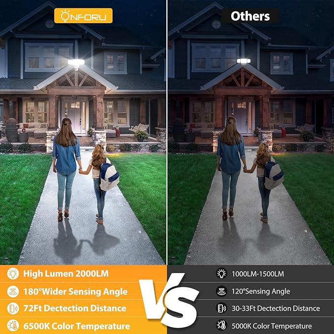 - Adjustable Motion Sensor Trigger Mode: With 180° wide sensing angle, this motion detector can sense motion detection distance up to Max 72 ft away and the lighting time can be adjusted from 5s to 30s by knob. You can adjust the middle knob on the sensor to set the ambient illuminance value. Light's motion sensor will be triggered, when the illuminance is lower than the set Lux value