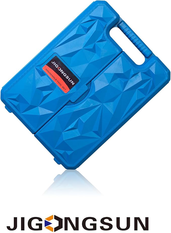 - Toolbox configuration : JIGONGSUN portable tool box contain basic hand home rrepair tool set,claw hammer, precision screwdriver, cutting pliers, voltage tester, adjustable wrench, tape measure, double-headed micro ratchet screwdriver, flashlight and household tool kit, Great to meet your daily work needs with DIY design