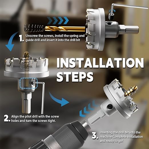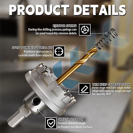- 【WARNING】For safety reasons, coolant should be added when drilling holes continuously at high speed, and please wear goggles and gloves when using our hole saw set