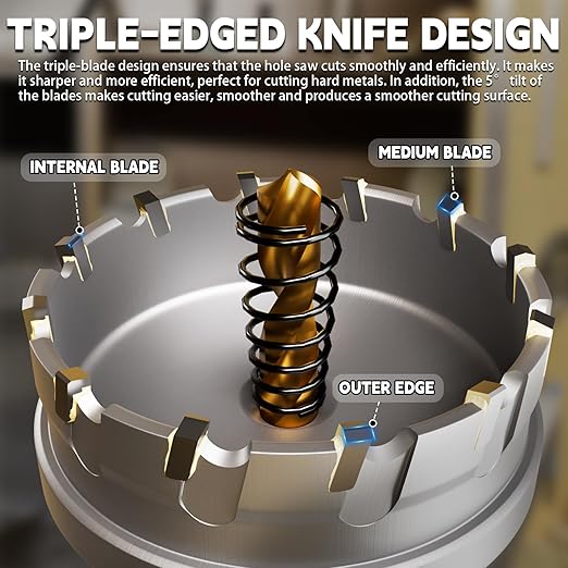 - 【UNIQUE DESIGN】This TCT Hole Saw is designed with three edges, including outer, middle and inner edges, making it sharper and more efficient, ideal for cutting hard metals