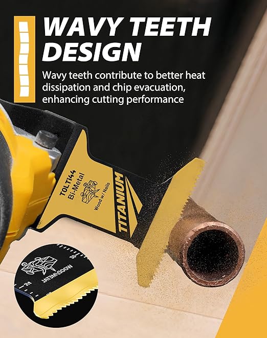 - 【Wavy Tooth Design】TOLESA multitool blades metal feature a wavy tooth design that enhances chip removal and heat dissipation, ensuring superior cutting performance and durability.