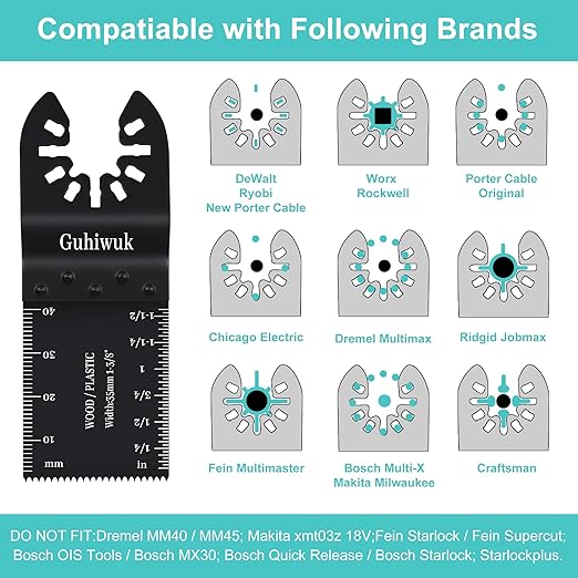 - 【WIDE COMPATIBILITY】These oscillating saw blades kit with a quick release universal interface system, it is perfectly fit most oscillating tools on the market. compatible with Dewalt, Bosch, Fein, Makita, Milwaukee, Ryobi, Hitachi, Chicago (Do not fit: Dremel MM40 / MM45, Makita xmt03z 18V, Fein Starlock / Fein Supercut, Bosch OIS Tools / Bosch MX30, Bosch Quick Release / Bosch Starlock, Starlockplus).