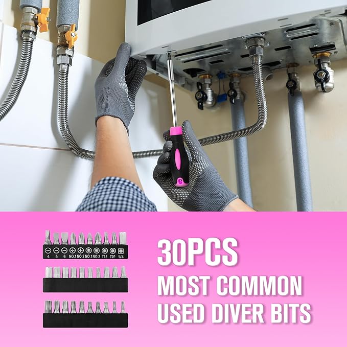 - High-Quality & Sturdy - This women's pink tool kit is crafted from high-grade stainless steel which is built to last and ensures they can withstand the rigors of daily use without compromising performance.Each household tool kit is designed with comfort and ease of use in mind.The non-slip, soft-grip handles provide a secure and comfortable hold,reducing hand fatigue during extended use.