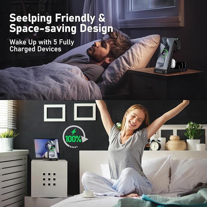 - 【Widly Compatibility】Our charging station works for almost all samsung android and iphone that support wireless charging (NOT FOR Galaxy A and Flip Series). Such as S25 Ultra/S25/S24 Ulta/S23/S22/S21/S20/Note20/10/9/8/7, Z Fold 7/6/5/4/3/2, iPhone 16/16e/16 Plus/16 Pro/16 Pro Max/iPhone 15/15 Plus/15 Pro/15 Pro Max/iPhone 14/14 Pro Max/14 Plus/14 Pro/iPhone 13/13 Pro/13 Pro Max/13 Mini/12/12 Pro/12 Pro Max/12 Mini/11/11 Pro/11 Pro Max/SE/XS MAX/X/XR/8/8 Plus