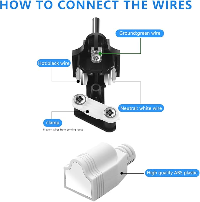 - 【Safe and Durable】The replacement plug 3 prong is made of high quality ABS plastic and metal, flame retardant, safe and durable. Built-in crimp card prevents wires from being pulled out.