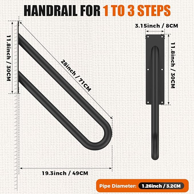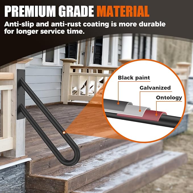 - 500LBS Staircase Handrails: GORWARE metal handrails for outdoor steps structure is sturdy and stable, capable of withstanding a tensile force of 500LBS. It provides reliable handrails for you and your family to enter and exit garages, porches, gardens, bathrooms, and terraces.