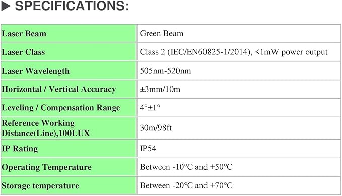 - UNIQUE LASER SCALE PROJECTION: Projects evenly spaced measuring markers on both horizontal and vertical lines, simplifying tasks like picture hanging and shelf installation. This product is classified as a Class II laser product according to IEC/EN 60825-1:2014, (Power ≤1mW @ 505-525 nm)