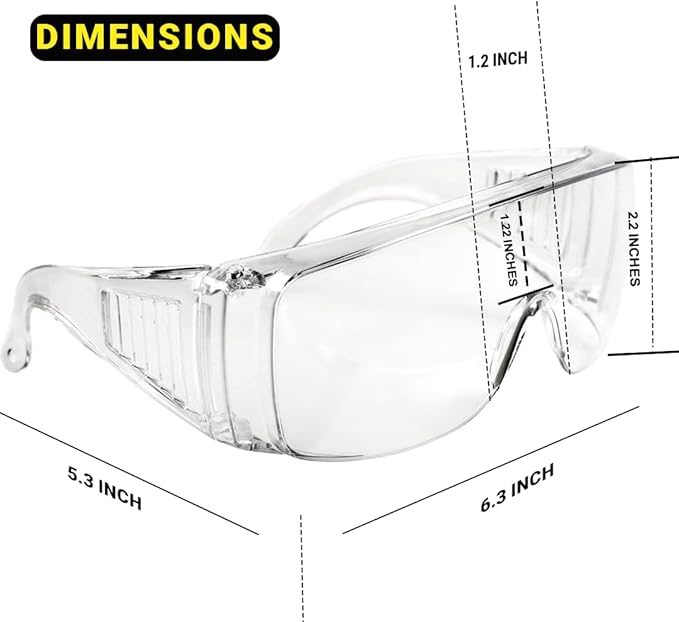 - Crystal Clear Eye Protection: Featuring clear goggles eye protection, these lab safety glasses ensure an unhindered view while safeguarding your vision. Perfect for medical goggles, offering clarity and safety during precision tasks.