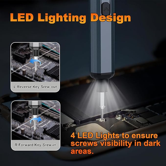 - 【Design Upgrade】Committed to providing people with advanced solutions, the OLAZOL Precision Electric Screwdriver handle features a three-flap geometry for a comfortable, non-slip grip, and an LED light that allows you to operate the screwdriver in dark spaces. The forward/reverse button design helps you easily switch between driving and removing screws.