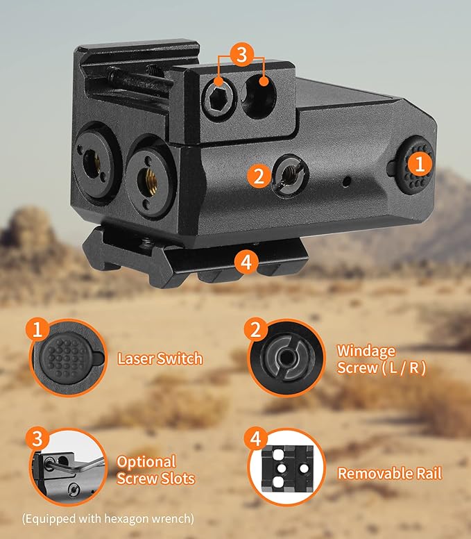 - ✔Windage and Elevation Adjustable - Both green laser and purple laser can be tuned with wrench provided.