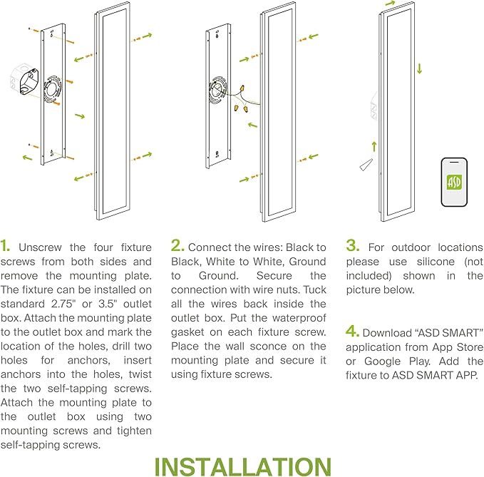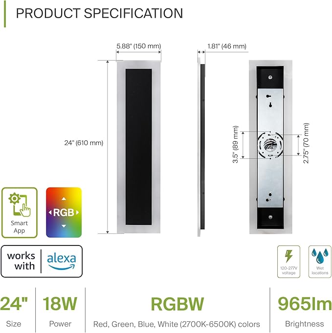 ASD LED 24" Long Wall Mount Light Fixture, Outdoor & Indoor Linear Sconce | RGBW, Smart, Waterproof, Anti-Rust, ETL Listed | 18W 1000LM 2700-6500K 100-277V | Exterior Porch Lighting | Black, 2 Pack