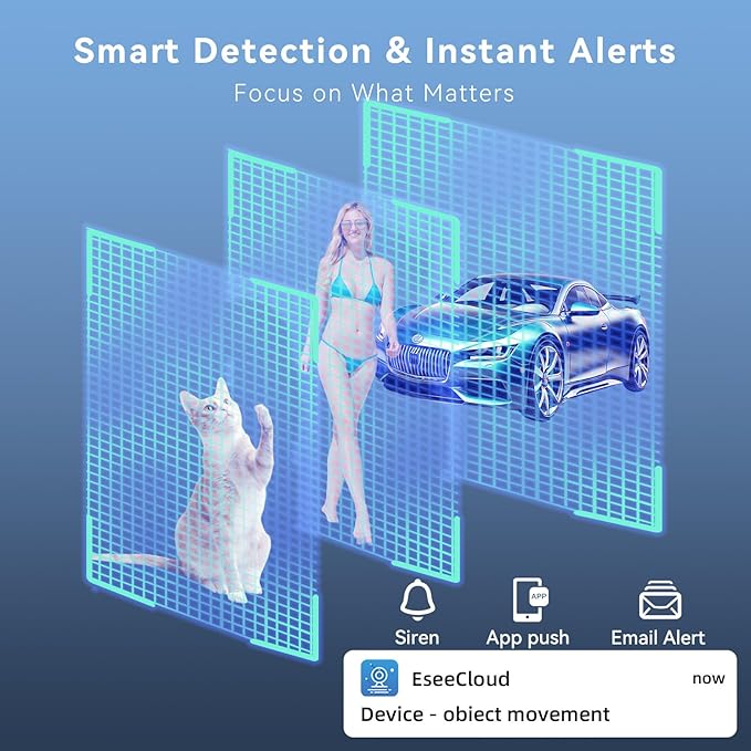 - SMART PERSONAL MOVEMENT : With the human/vehicle detection function, you will receive a push notification from your mobile app whenever someone/vehicle enters your property.