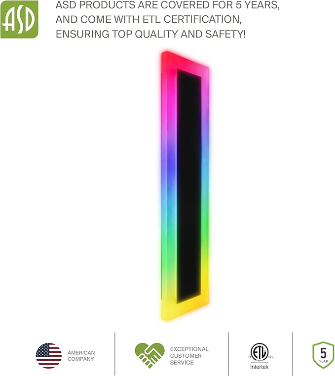 ASD LED 48" Long Wall Mount Light Fixture, Outdoor & Indoor Linear Sconce | RGBW, Smart, Waterproof, Anti-Rust, ETL Listed | 36W 1800LM 2700-6500K 100-277V | Exterior Porch Lighting | Black