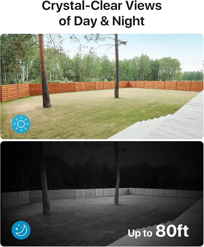 - 【80ft Night Vision】This camera provides a sharp and crisp image both day and night. Enjoy up to 80ft of night vision in total darkness and 120ft of night vision in ambient light.