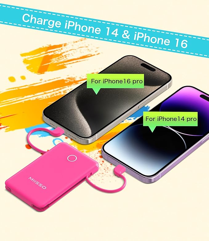 - Credit Card Size: It is the slimmest and the smallest of MIISSO portable chargers with cables, only 0.27lb(122g) and its body like a credit card. The lightweight design lets you take it out without pressure. It's slim enough to put it in your pocket or in your handbag