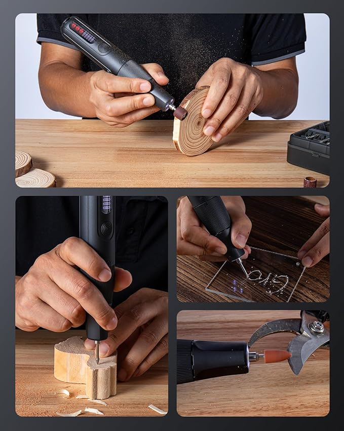 - Unlock Endless DIY Possibilities -This powerful rotary tool equipped with an 8V motor that delivers consistent, strong performance for engraving, sanding, polishing, drilling, and other DIY tasks. Which is more powerful than the 4V version but not as heavy as the 12V model. Whether you're working with wood, metal, or other materials, this tool is perfect for small home projects and more detailed craftsmanship