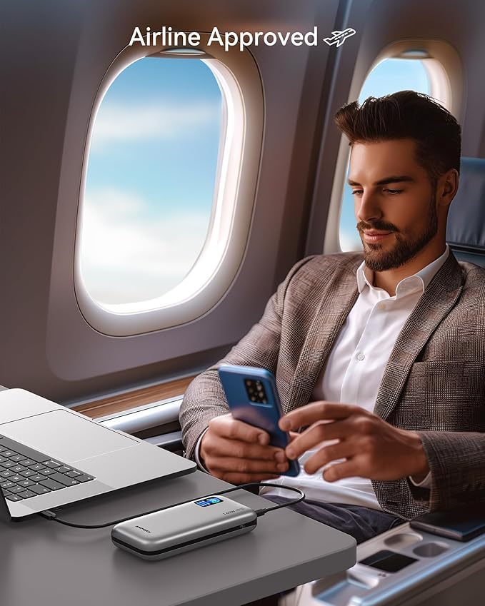 - [24,000mAh Capacity - Flight-Approved]: This 24,000mAh power bank (86.4Wh) features a massive battery. All-day battery life: Charge your laptop, phone, and devices for over 24 hours, making it perfect for work, hiking, camping, cross-country flights, or as an emergency power bank during a power outage at home. It can charge a MacBook Pro 1.3 times and an iPhone 15 4.3 times