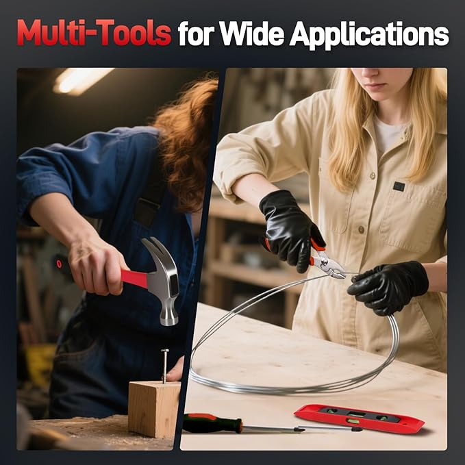 - [Multi-Purpose Home Tool Kit] This home tool set includes the most useful hand tools for repairing or maintaining precision electronics projects and hardware upgrades. Featuring: claw hammer, pipe wrench, long-nose pliers, wrench, tape measure (10 ft), wire cutter, sockets, screwdrivers, and screwdriver bits. The perfect tool collection for homeowners: tightening screws, assembling furniture, installing curtain rods, and more.
