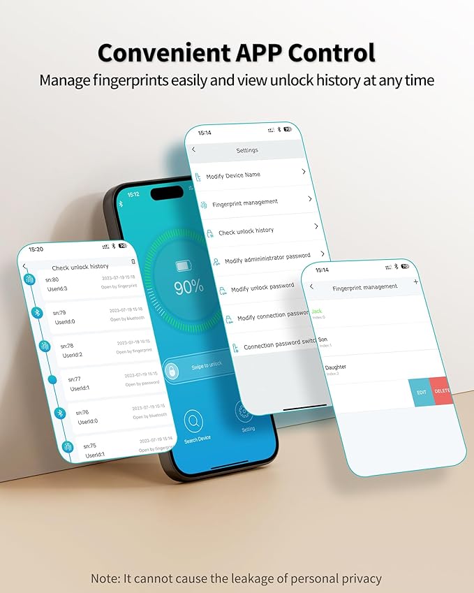 - Convenient App Operation: Simply connect with your phone APP and slide the screen to unlock the gun safes with one click quickly. You can check the remaining battery power in real-time and easily manage fingerprints, add/delete at will, and a safe box set up to 40 fingerprints. View the unlocking record of the user ID at any time to keep track of the unlocking situation. Administrator, unlocking, and connection passwords can also be easily changed to keep the pistol safe under your control
