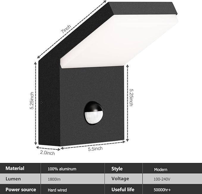 Outdoor Wall Light Motion Sensor Porch LED Exterior Lights Fixture Sconce Black Modern Aluminum Lamps Front Door Lantern for Patio Garden Garage Fence Yard