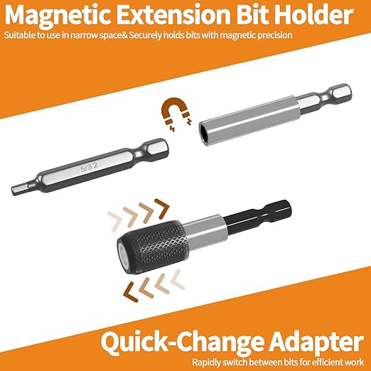 - 【228 Pcs Ultimate Screwdriver Bit Set】This all-inclusive tool kit includes Nut Drivers, Security Bits, Torx, Slotted, Phillips, Square, Pozi, Hex, Socket, and more, plus a Magnetic Bit Holder and Quick-Change Adapter a wide range of repair and assembly needs. Whether you're a professional technician or a DIY enthusiast, this tool kit is your ideal choice.
