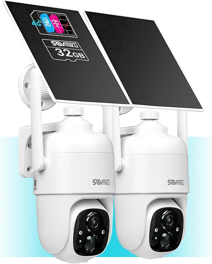 Sovmiku 2C1 4G LTE Cellular Security Camera Wireless Outdoor, $14.9/Month for Unlimited Data, Easy to Setup, IP65 Waterproof, No Wi-Fi Surveillance Cam Two Way Audio, Color Night Vision, 32GB Included