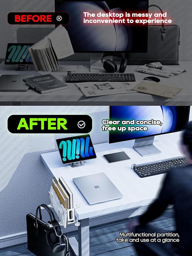 - Save space: The installation position is on the side of the desk, which does not take up the space of the desk, making your desk tidier. (The effective depth of the desk must be greater than 5cm/2inch, and the thickness of the desk must be less than 6cm/2.3inch)