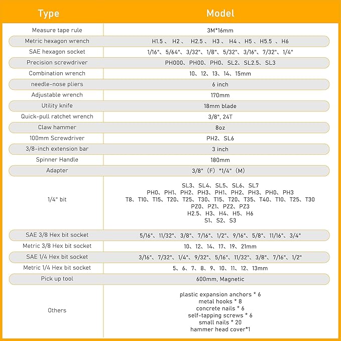 - Comprehensive: This 159-piece set includes everything needed for small repairs and DIY projects; features a hammer, pliers, screwdrivers, and a tape measure