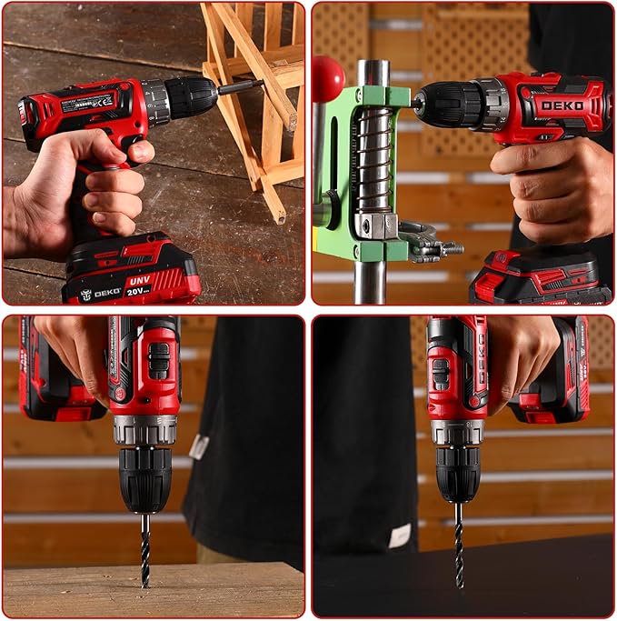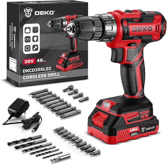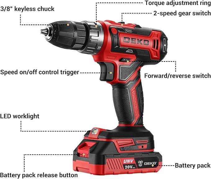 Power Drill Cordless: DEKO PRO Cordless Drill 20V Electric Power Drills Set Tool for Women with Battery and Charger 20 Volt Drills Driver Kit Red